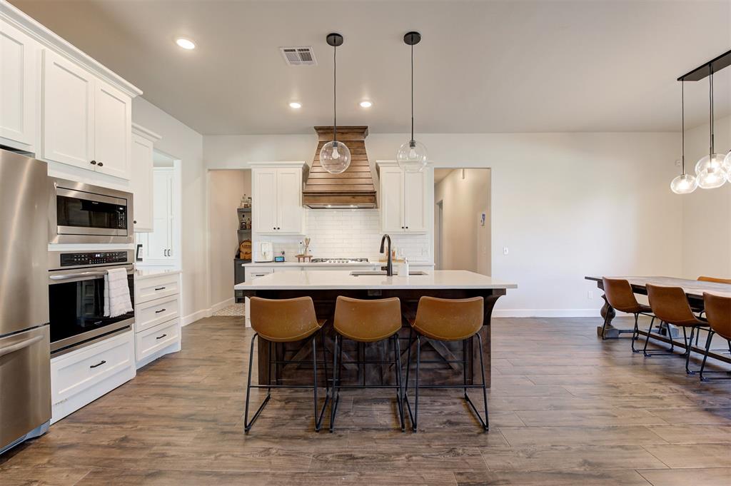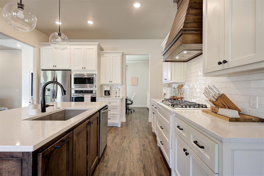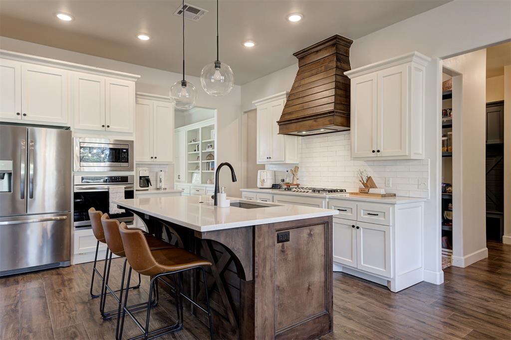 Imagine hosting the holidays with your gorgeous kitchen featuring stainless steel appliances, large kitchen island, quartz countertops and dream pantry. This full walk through pantry highlights designer tile, closed and open storage and more than enough space for a large family. The west side of the home features 4 downstairs secondary bedrooms, 2 additional full bathrooms and an upstairs bonus room with bathroom.