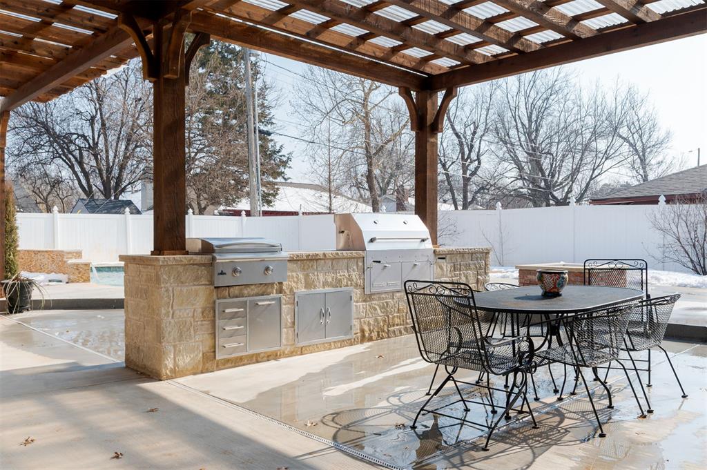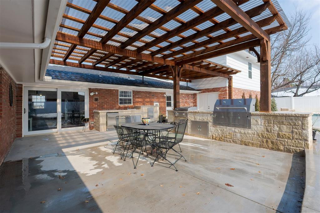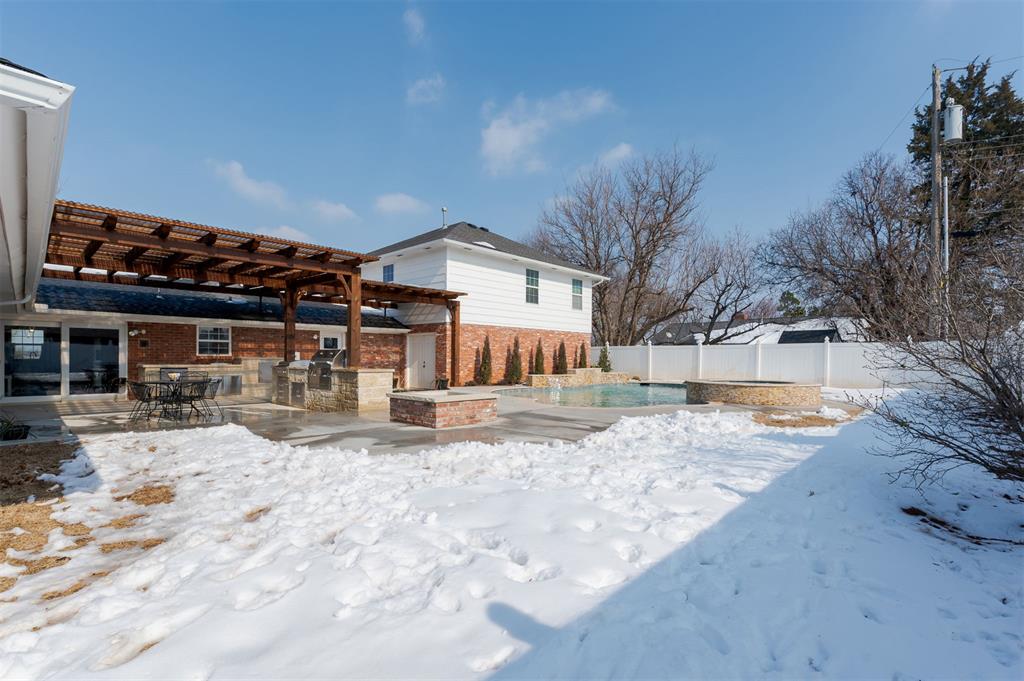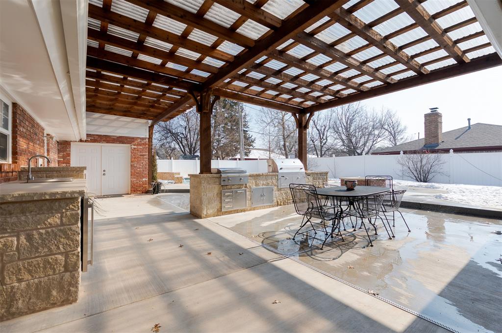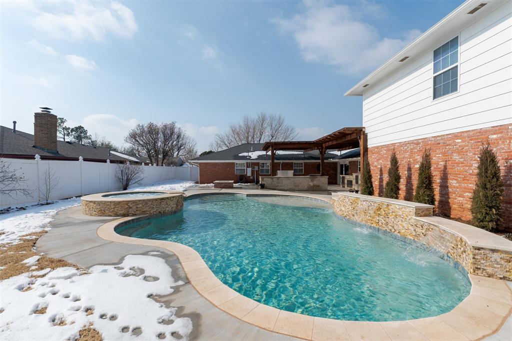 GORGEOUS NEW POOL & OUTDOOR KITCHEN | PRIME WILSHIRE ESTATES LOCATION NEAR LAKE HEFNER. Welcome to this beautiful Wilshire Estates home, ideally situated just moments from Lake Hefner and the beloved Kids Lake. Offering the ideal balance of open gathering spaces and private retreats, this spacious 4-bedroom, 4-bath residence delivers exceptional living inside and out. Step inside to an abundance of natural light and thoughtful updates and expansions. Large windows frame lovely views of Lake Hefner and the sparkling new pool. The back yard is truly an entertainer's dream. In addition to the new pool and spa, the outdoor oasis features the pergola-covered kitchen complete with Hasty Bake charcoal grill, Blaze gas grill, refrigerator, sink, generous prep space, and an extended patio for cozying up to the new gas fire pit. Inside, the remodeled kitchen is designed for both everyday living and entertaining, complete with granite counters, 5-burner gas cooktop, double built-in ovens, pull-out drawers, and an island for casual seating. The den features a stylish wet bar with wine fridge, ice maker, display shelves, and ample storage. The flexible floor plan provides privacy and comfort, with the primary suite and an additional bedroom suite downstairs, while upstairs bedrooms three and four share a Jack-and-Jill bath with private vanities. Every bedroom, bath, and closet is generously sized. Additional highlights include updated electrical wiring and panel, additional insulation throughout, built-ins and storage; engineered wood and tile flooring (no carpet); a sunny sitting nook at the top of the stairs; side-entry garage with extra 9x28 storage closet; and additional parking spaces. This home blends comfort, style, and outdoor living. Schedule your private showing today.