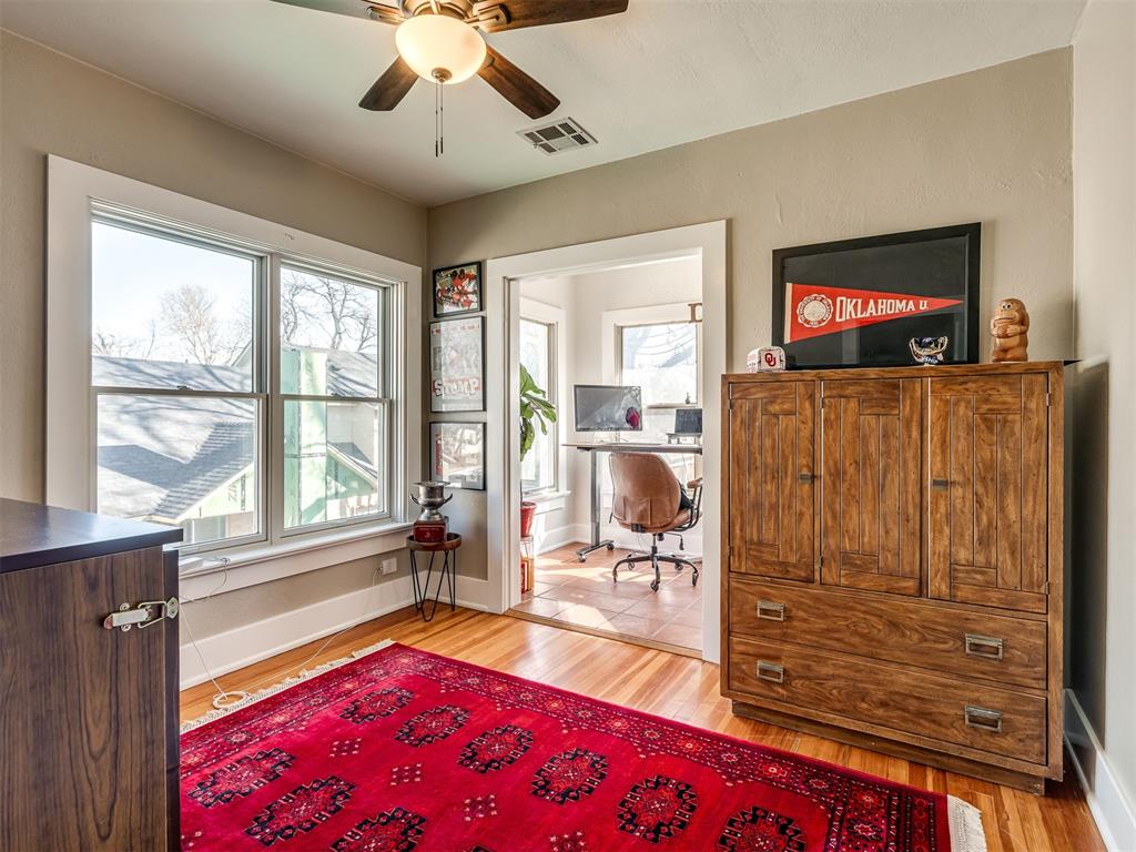 A large basement provides a laundry area and abundant storage, a rare bonus in this historic neighborhood. Step outside to enjoy the backyard deck and patio, ready to become your personal oasis for relaxing evenings, game-day gatherings, and unforgettable tailgates. Historic appeal, modern updates, and a premier location combine to make this exceptional Norman home truly special. *Hail resistant roof installed 2021*